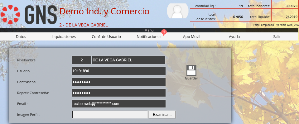 un usuario web, podrá cambiar el usuario por defecto (*) a uno definido por el empleado. (**)